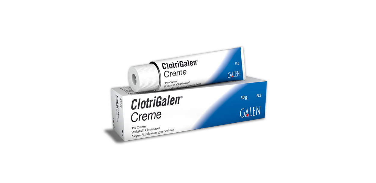 Anwendungsgebiete: ClotriGalen® wird angewendet bei Pilzinfektionen der Haut durch Fadenpilze (Dermatophyten), Hefen (z. B. Candida-Arten), Schimmelpilze und andere, wie Malassezia furfur sowie Infektionen durch Corynebacterium minutissimum. Diese können sich äußern als Fußpilz, Pilze der Haut und der Hautfalten, Kleienpilzflechte (Pityriasis versicolor), Zwergflechte (Erythrasma) und als oberflächliche Candidosen.